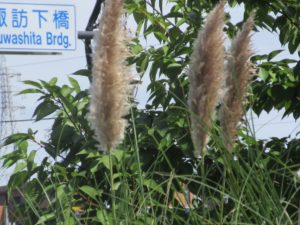 秋になると立派なススキの穂をのぞかせるセンターベルトがあったなと思い出し、そこまで車を回してみると、ありましたありました立派なススキが!間違いなく秋が近づいておりました。